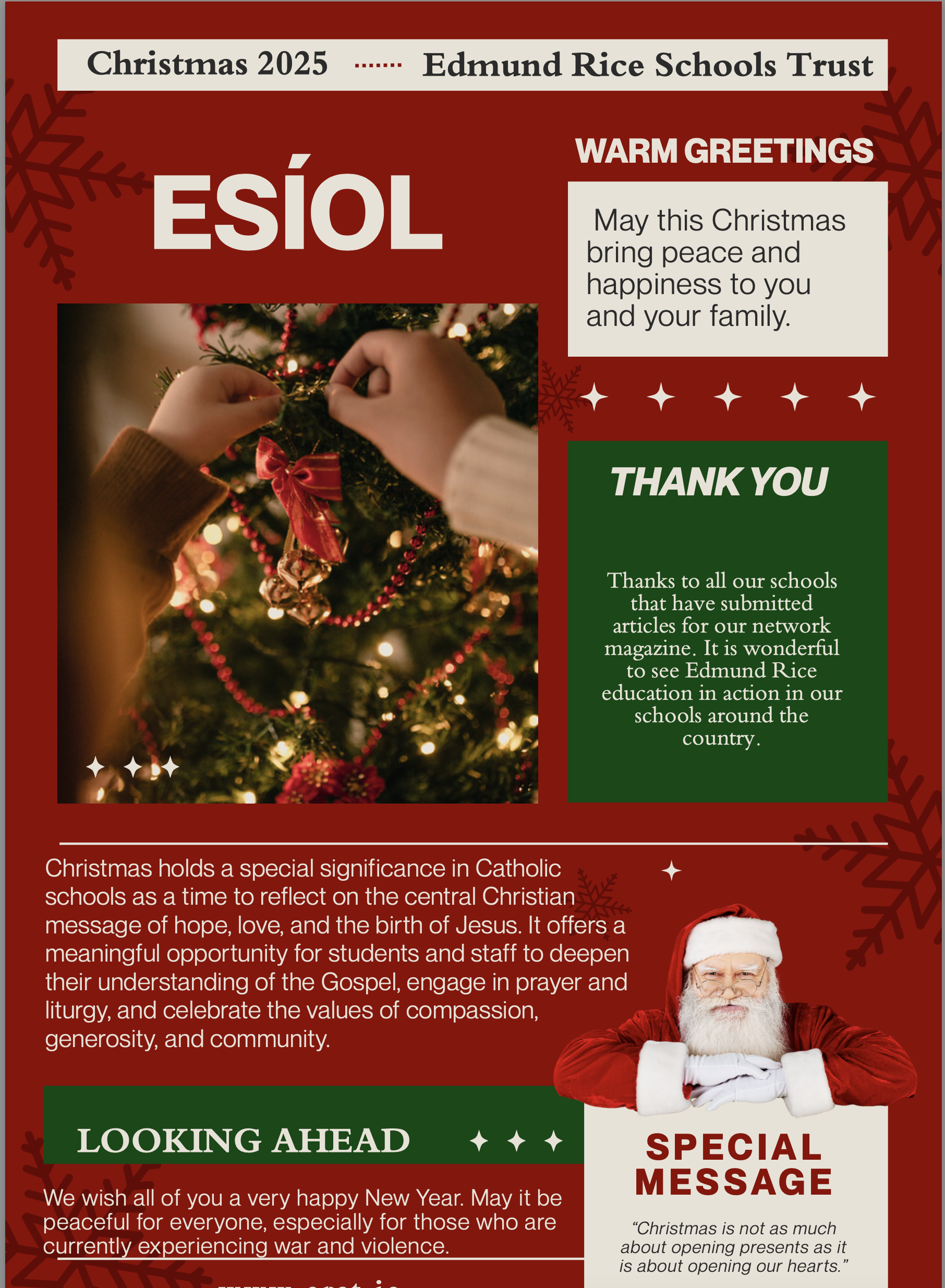 Read the latest eSíol (Autumn 2023) for an update on news across the network of Edmund Rice schools in Ireland. It is available here.